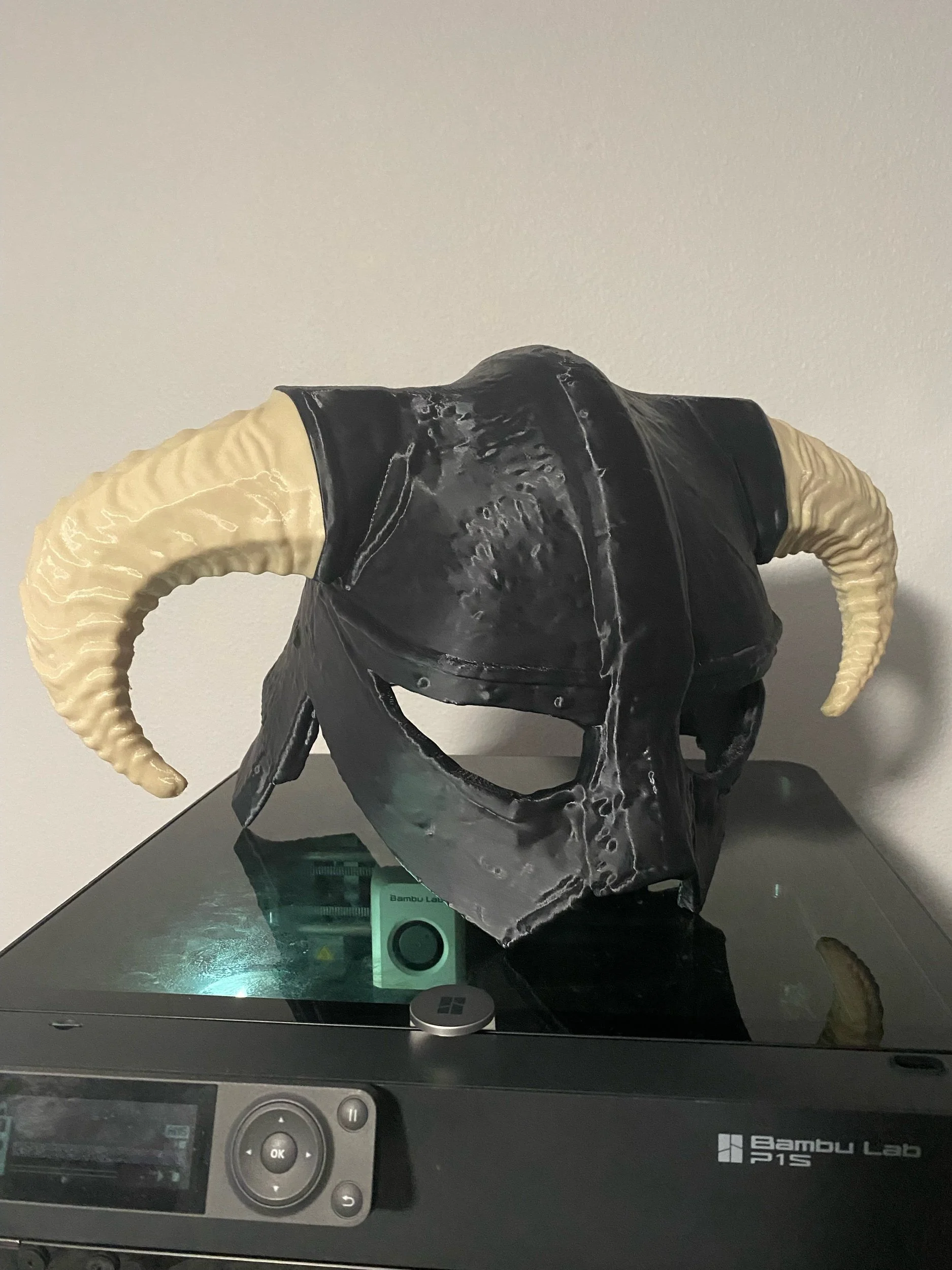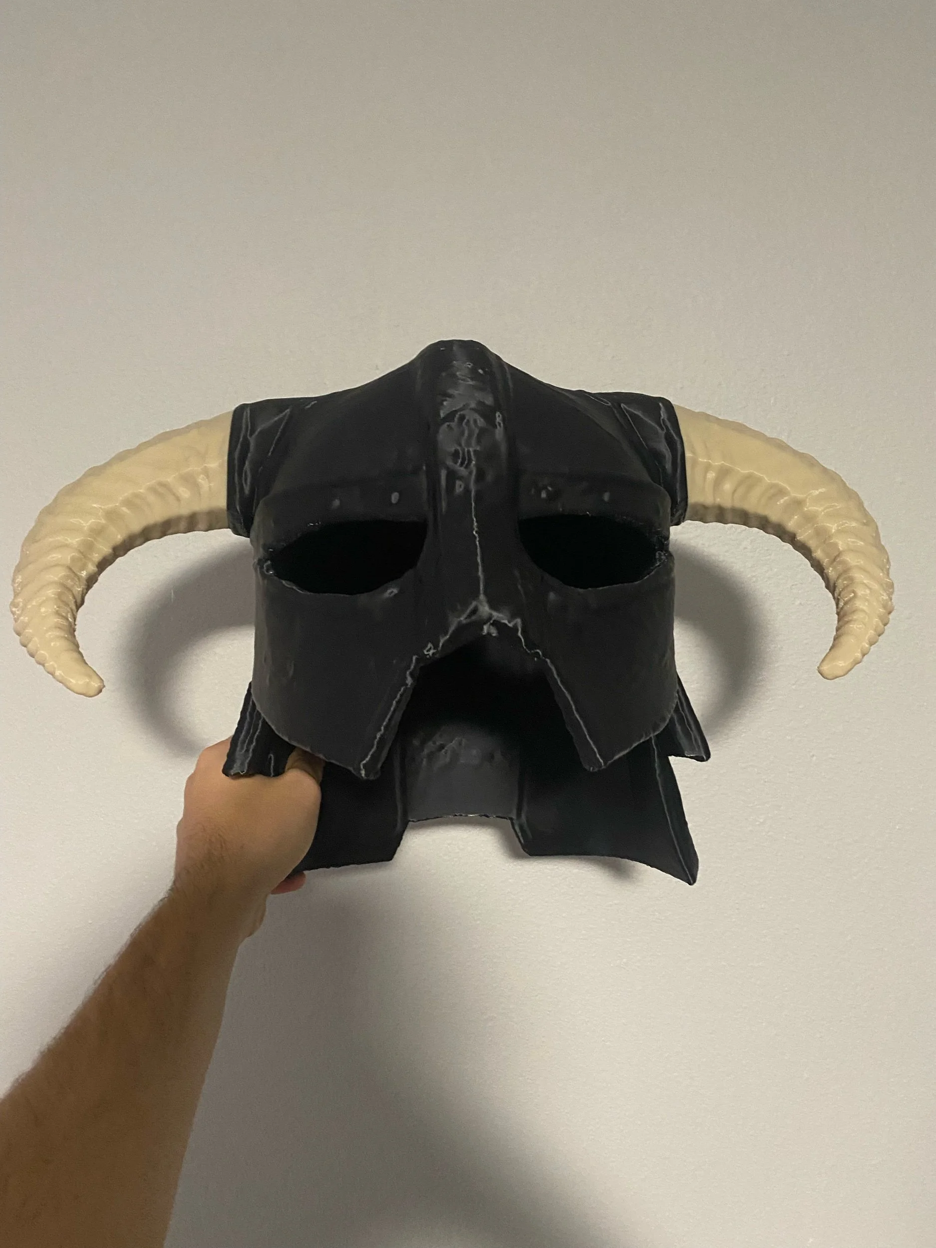 Check out this iron helmet from the popular video game Skyrim! This helmet was 3D printed on a quality multicolor printer. It is sized by default for a 23” circumference head. If you need it resized please let me know.
