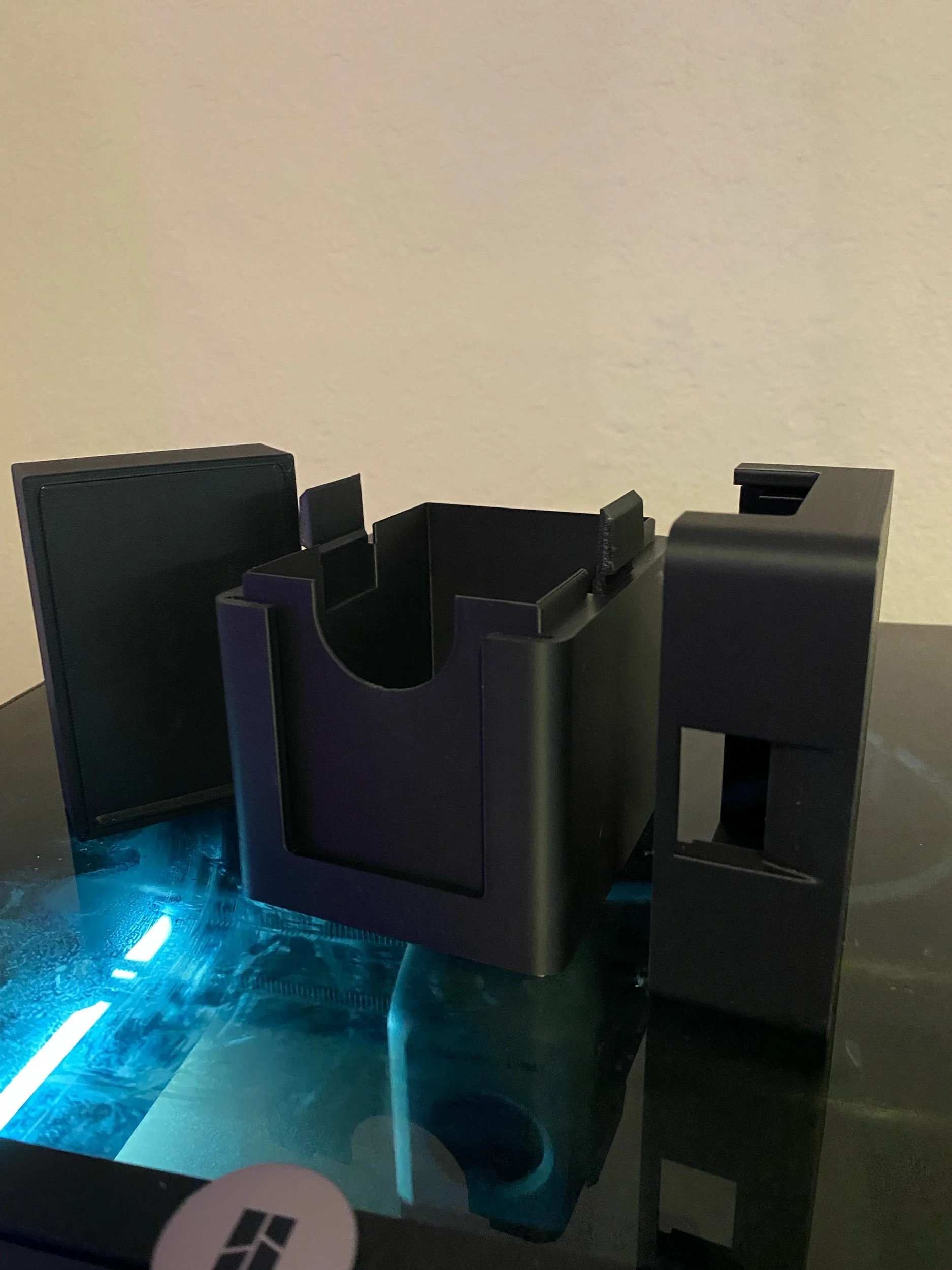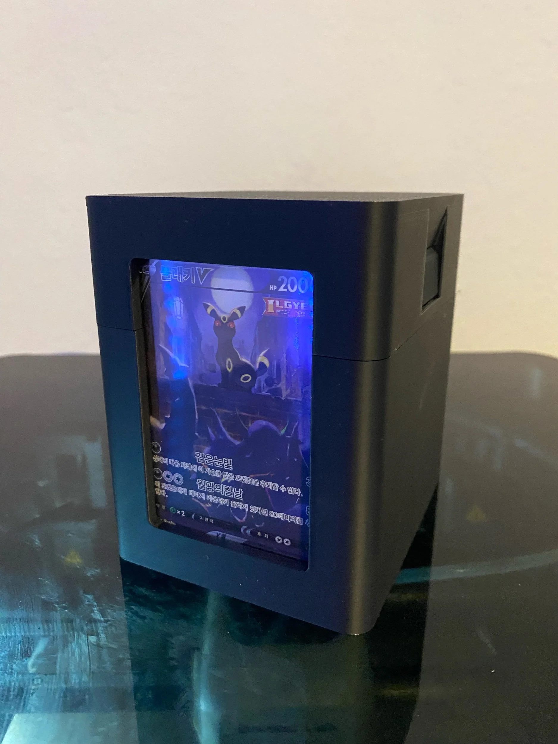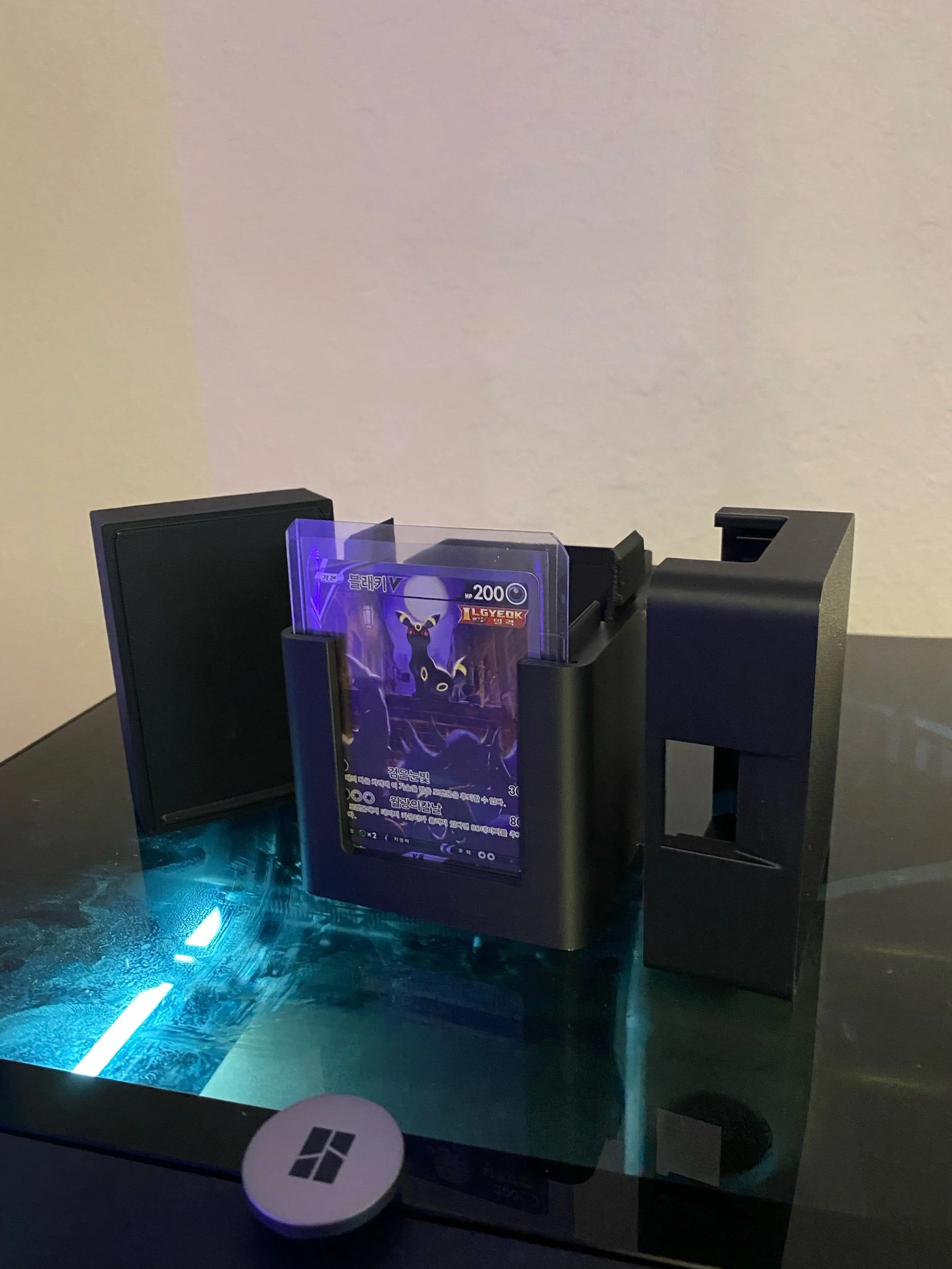Check out this trading card deck box. This deck box contains an accessory box and have a slot for a top loader in the front to display your favorite card! This trading card box is made on a high quality 3D printer.